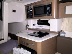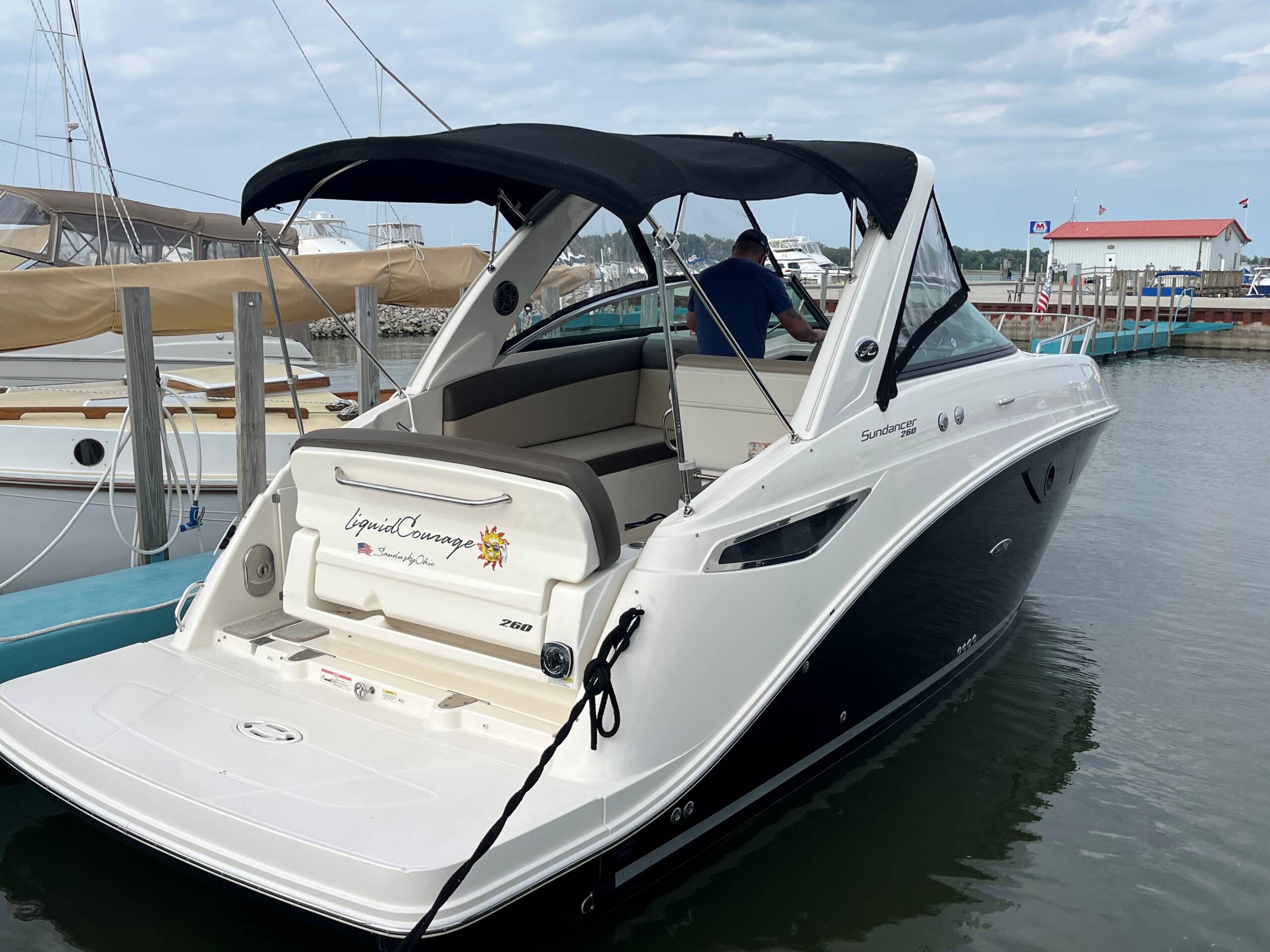 The performance-enhanced design of our 260 Sundancer inspires longer cruises and greater confidence on the water. Highlights include an open cockpit with reversible helm seat and wet bar, streamlined V-berth and mid-berth, full galley and head, and plenty of storage.