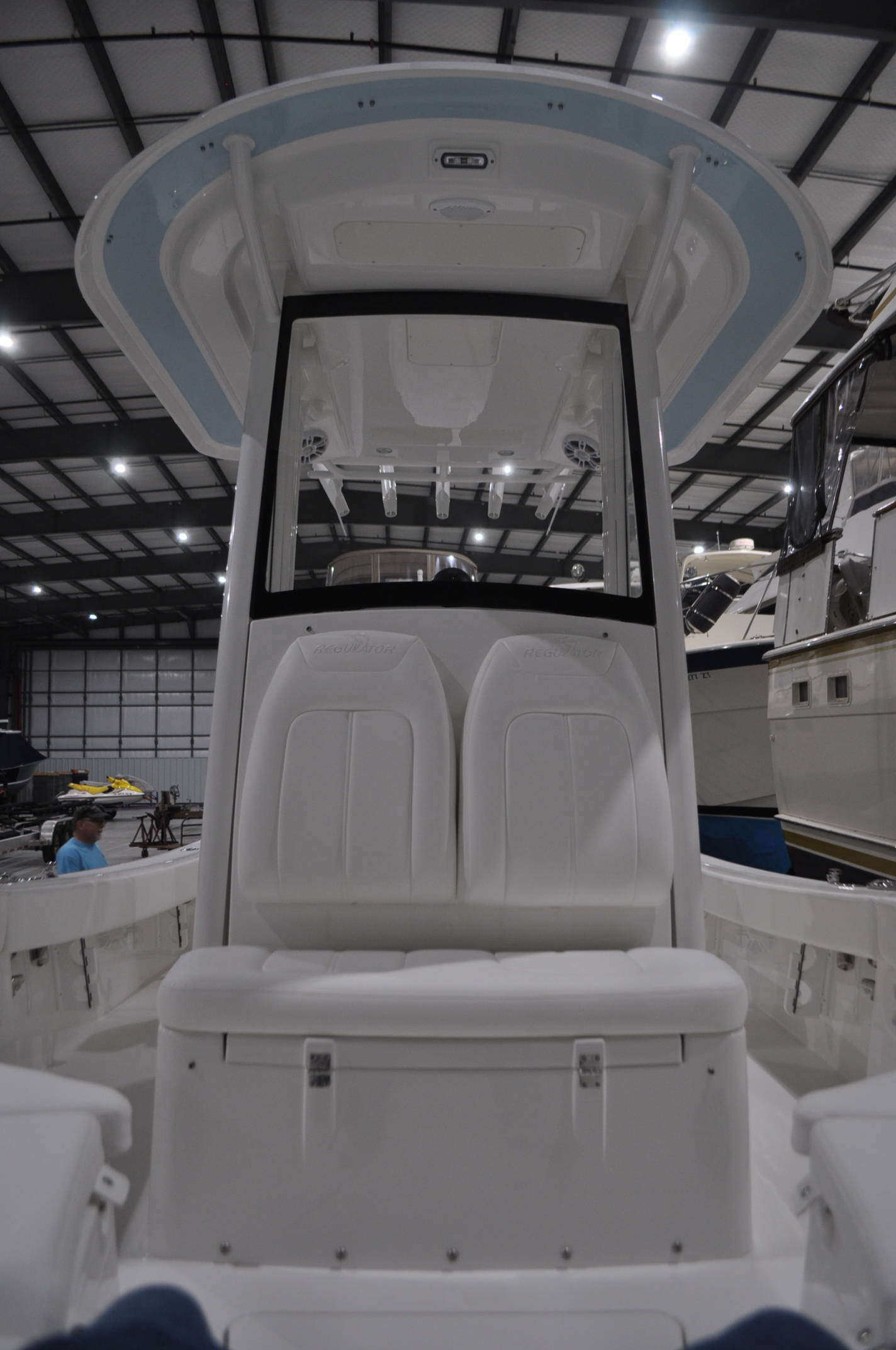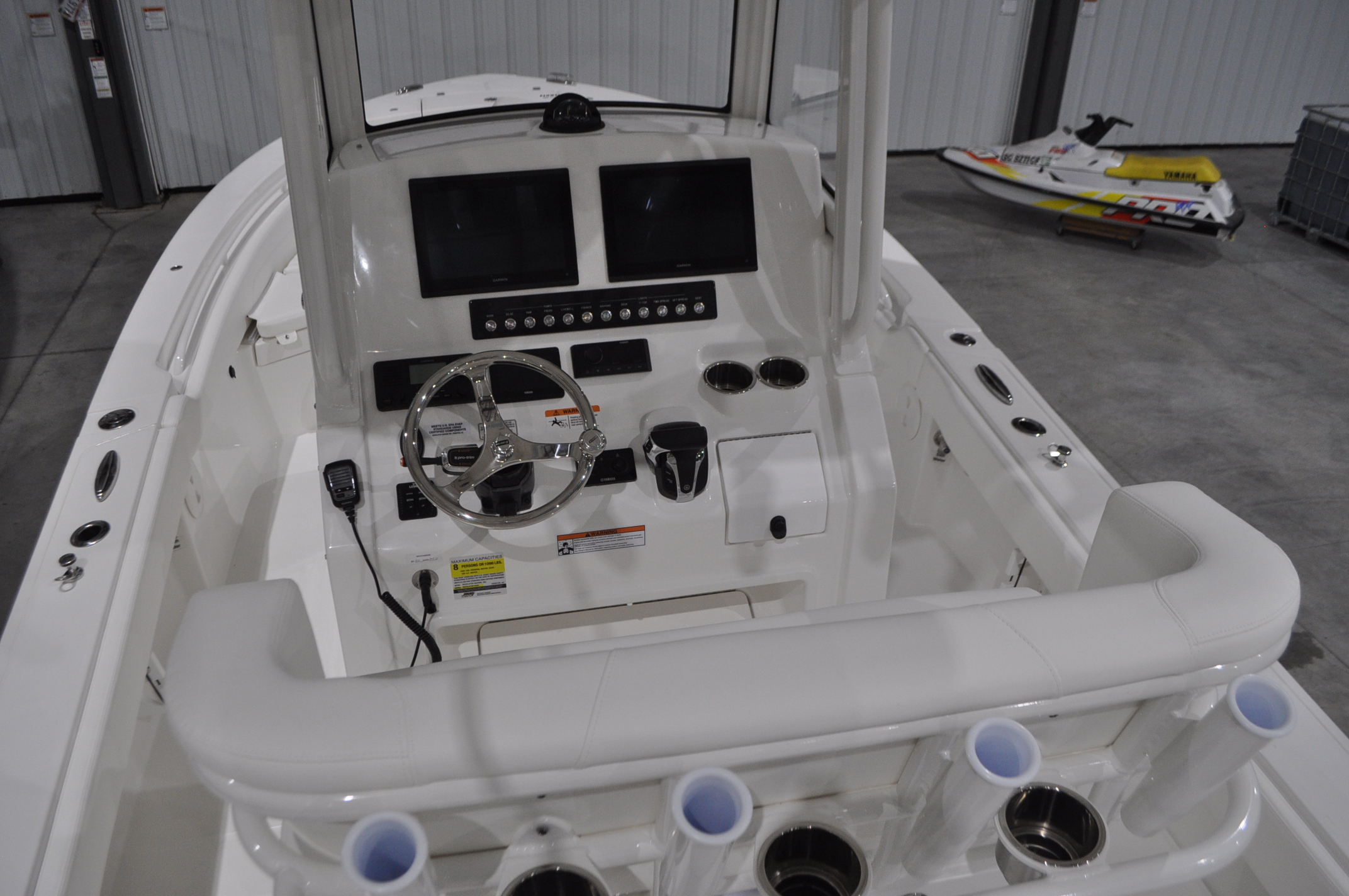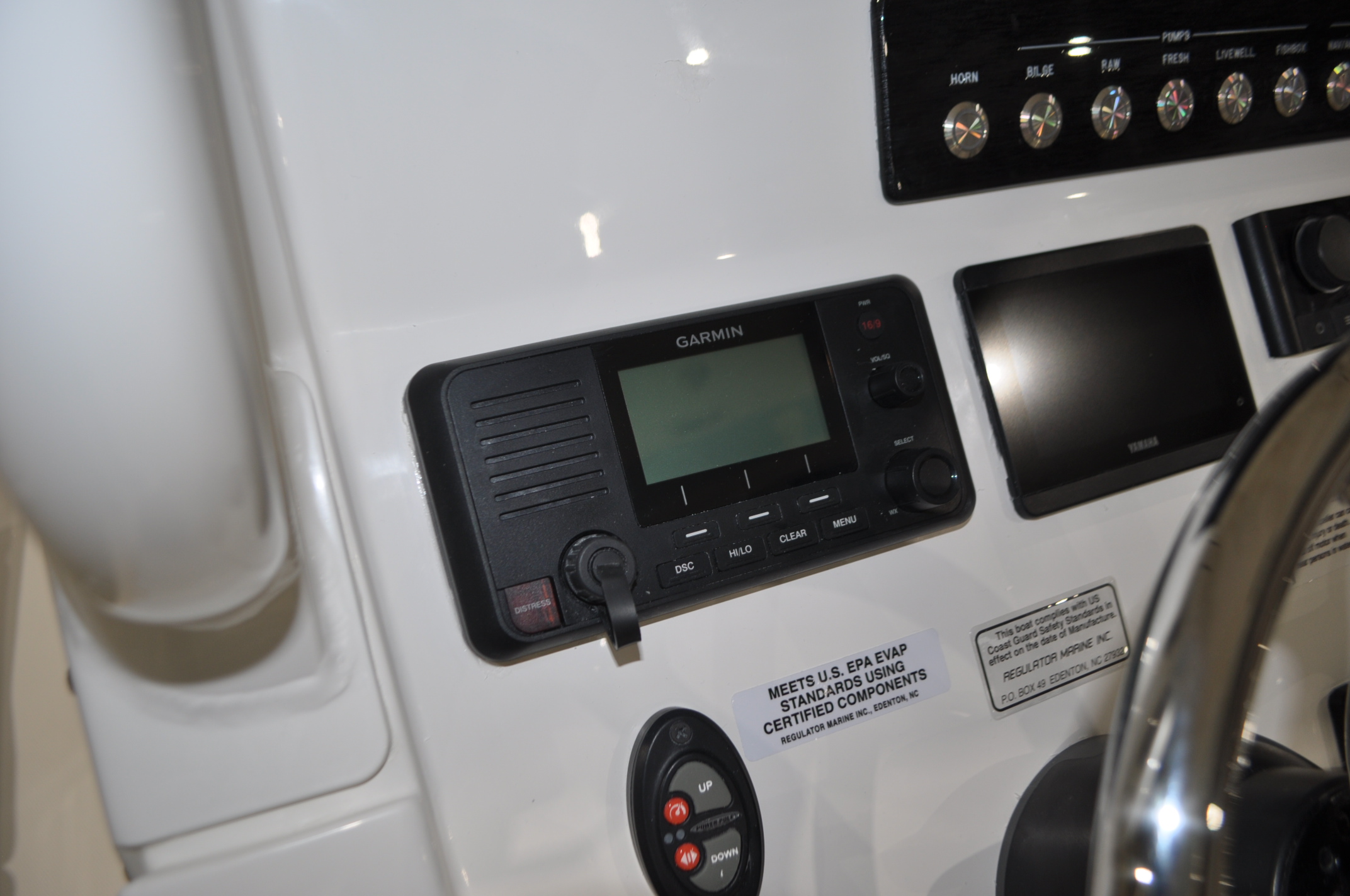 - Factory-Installed Garmin® 24XO Premium Fish Package: Dual 12’’ GPSMAP® 1243 XSV Touchscreen Display, Airmar® B150 CHIRP Transducer, and VHF 215 Radio with Dual 8’ Antennas*
