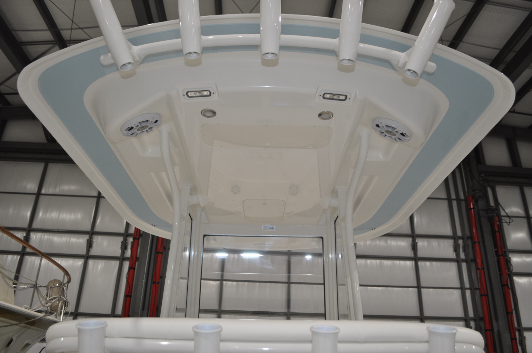 - Fiberglass T-Top with Spreader Lights and Multi-Colored LED Lights – Complete with Integrated Wraparound Windshield