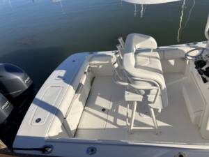 down, livewell plumbing, insulated forward fish boxes, in-deck illuminated locking rod storage and a 21-gallon freshwater