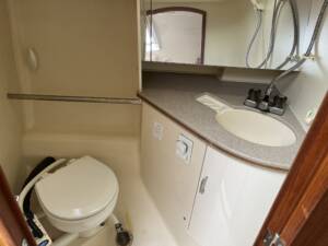 The interior boasts two private staterooms, each with their own privacy bulkhead (not just a curtain). Great natural light is