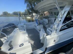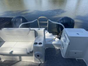 Port and starboard gunwale inserts with 3 cup holders, storage bins, and speakers