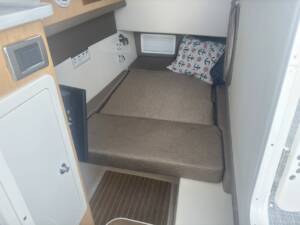 Aft facing seating that folds into 72” long berth (54” wide) with storage underneath